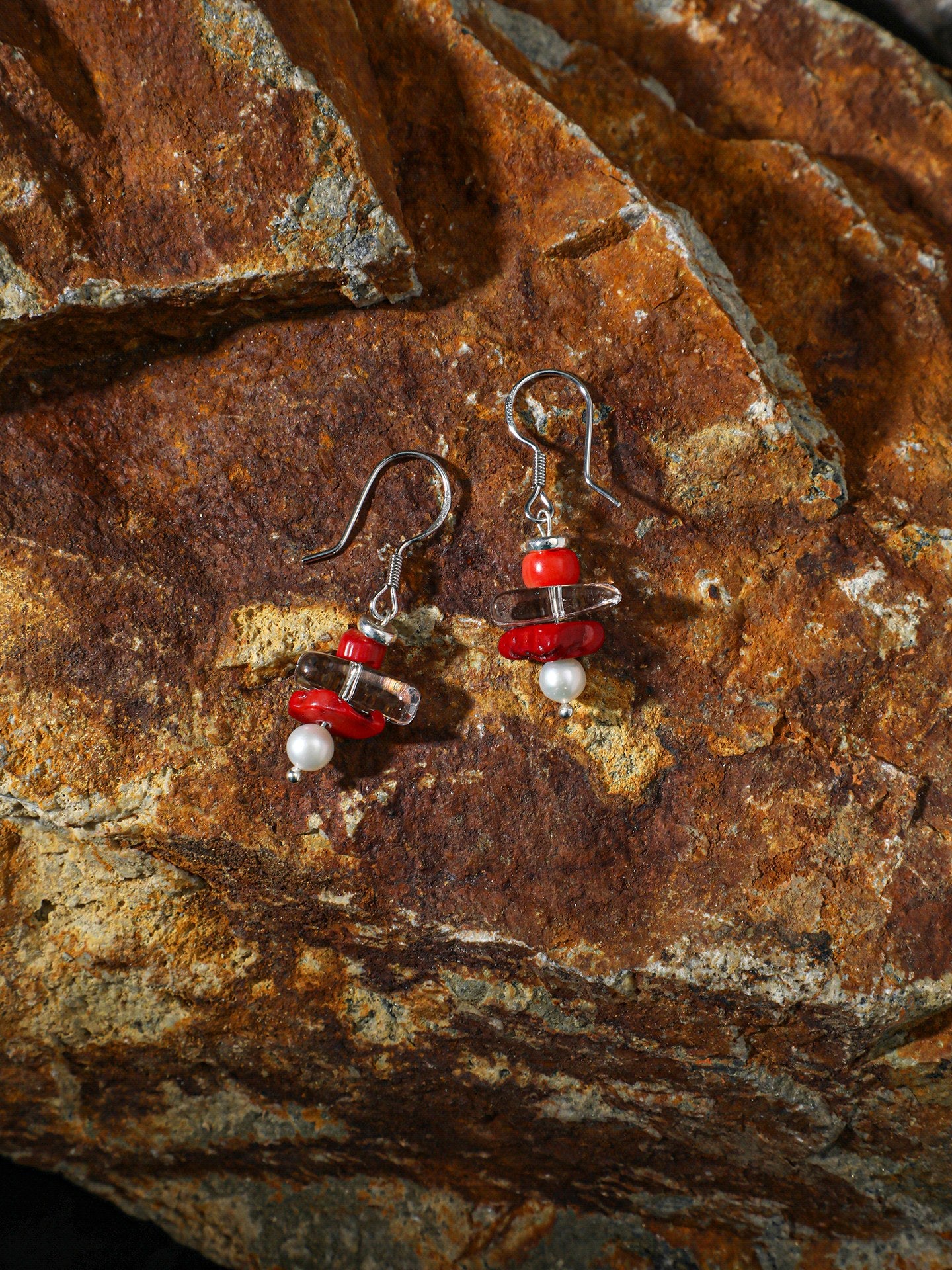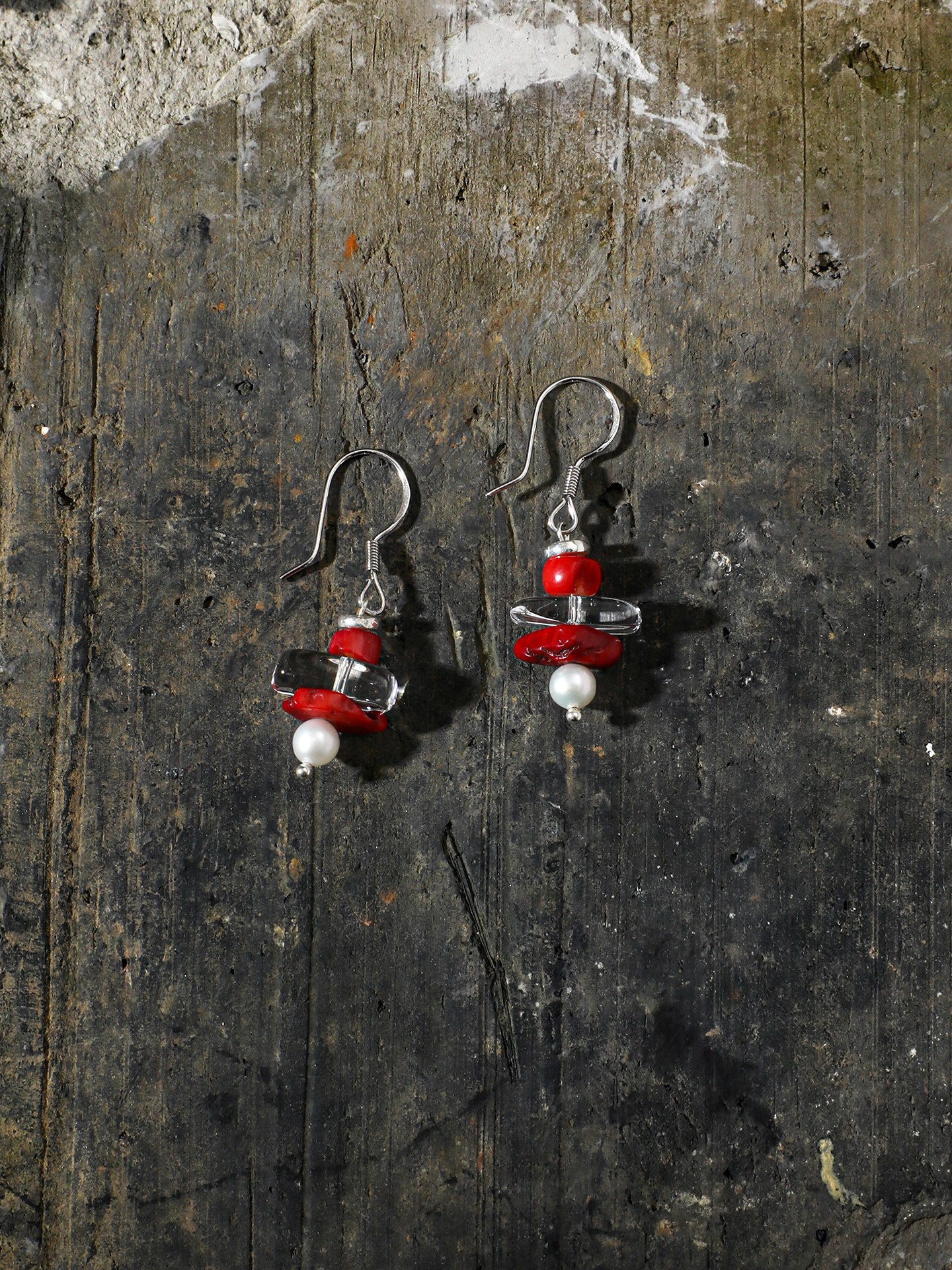 海竹珊瑚 × クリスタル × パール ナチュラルエナジーピアス|軽やかに巡る生命の輝き