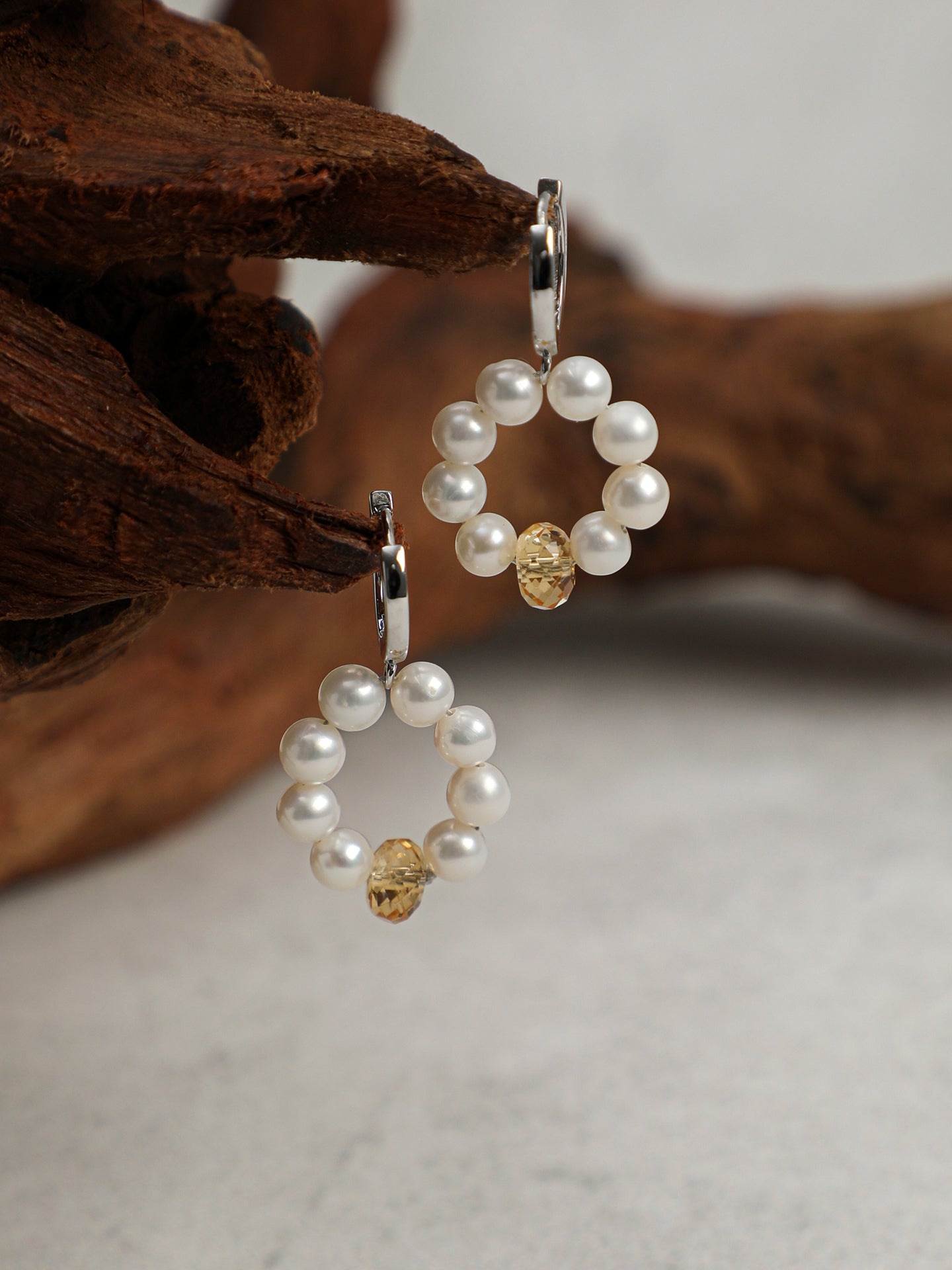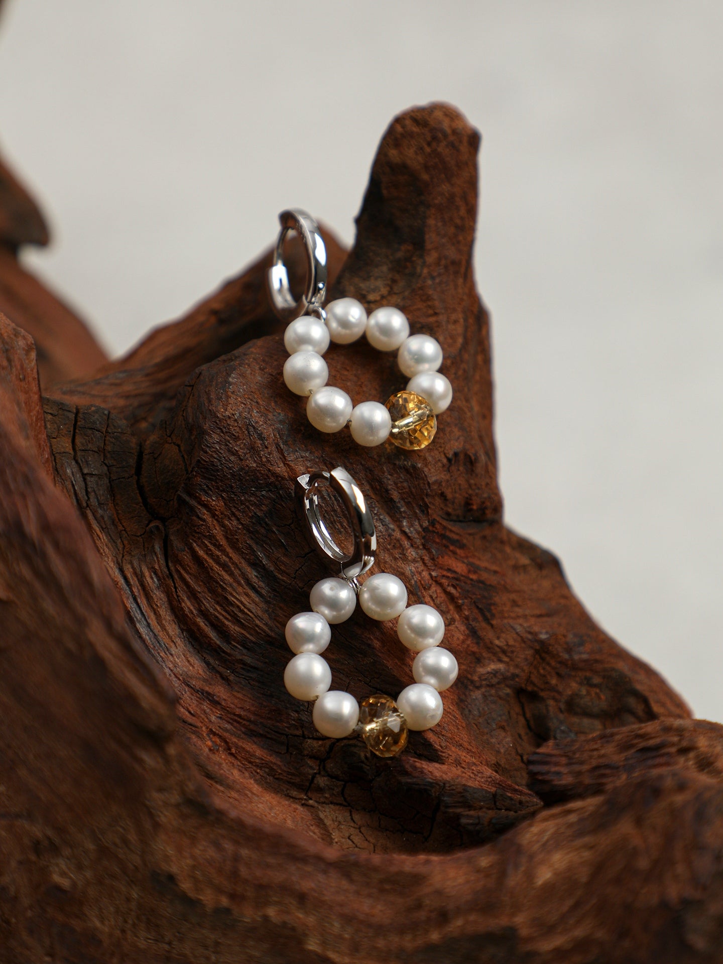 天然淡水パール × シトリン エネルギーピアス K925シルバー 軽やかラグジュアリー