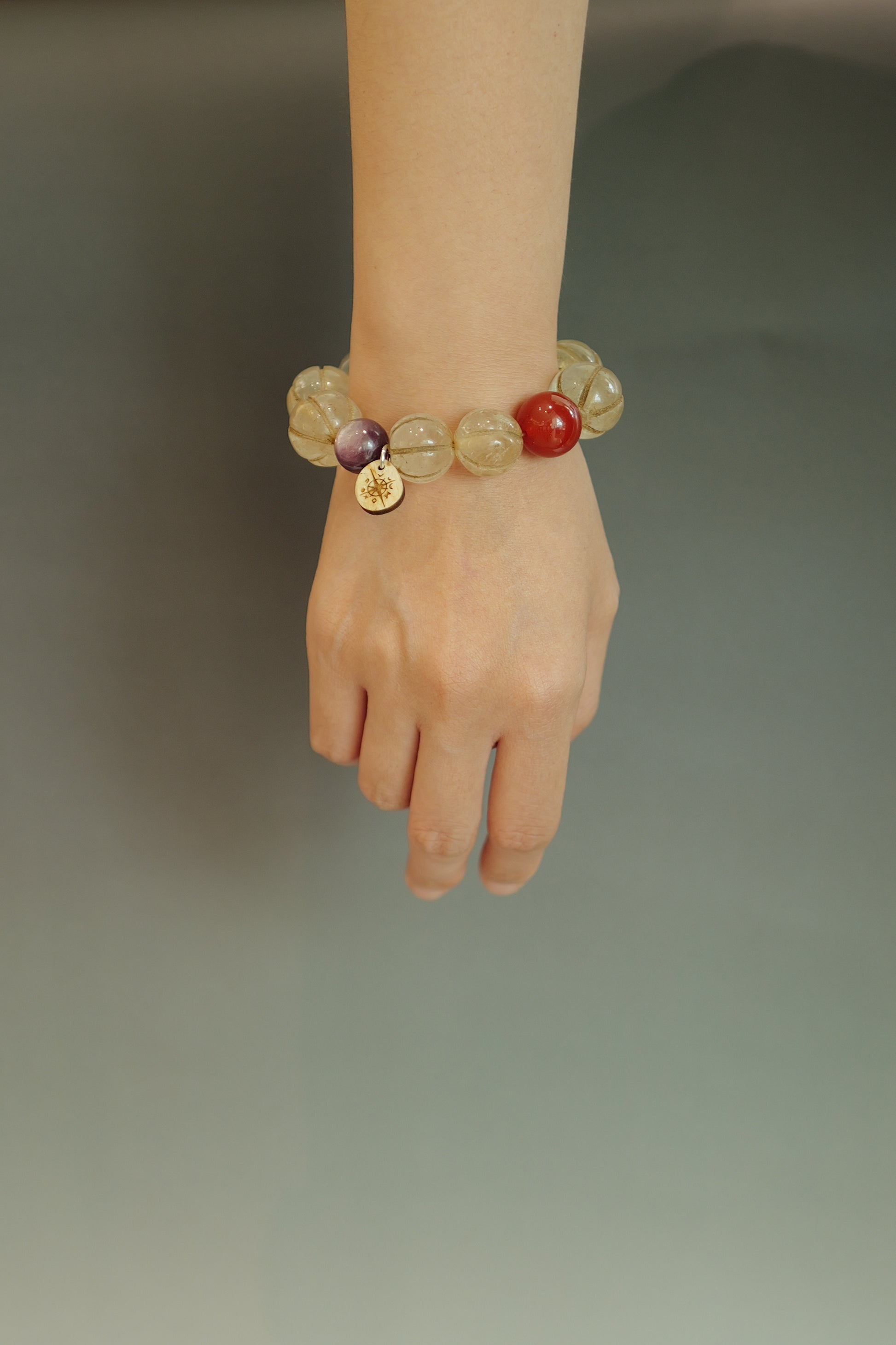 高波動のヒマラヤ水晶を、伝統的な「瓜型」に仕上げ、さらに味わい深い“アンティーク風”の加工を施した特別な粒。