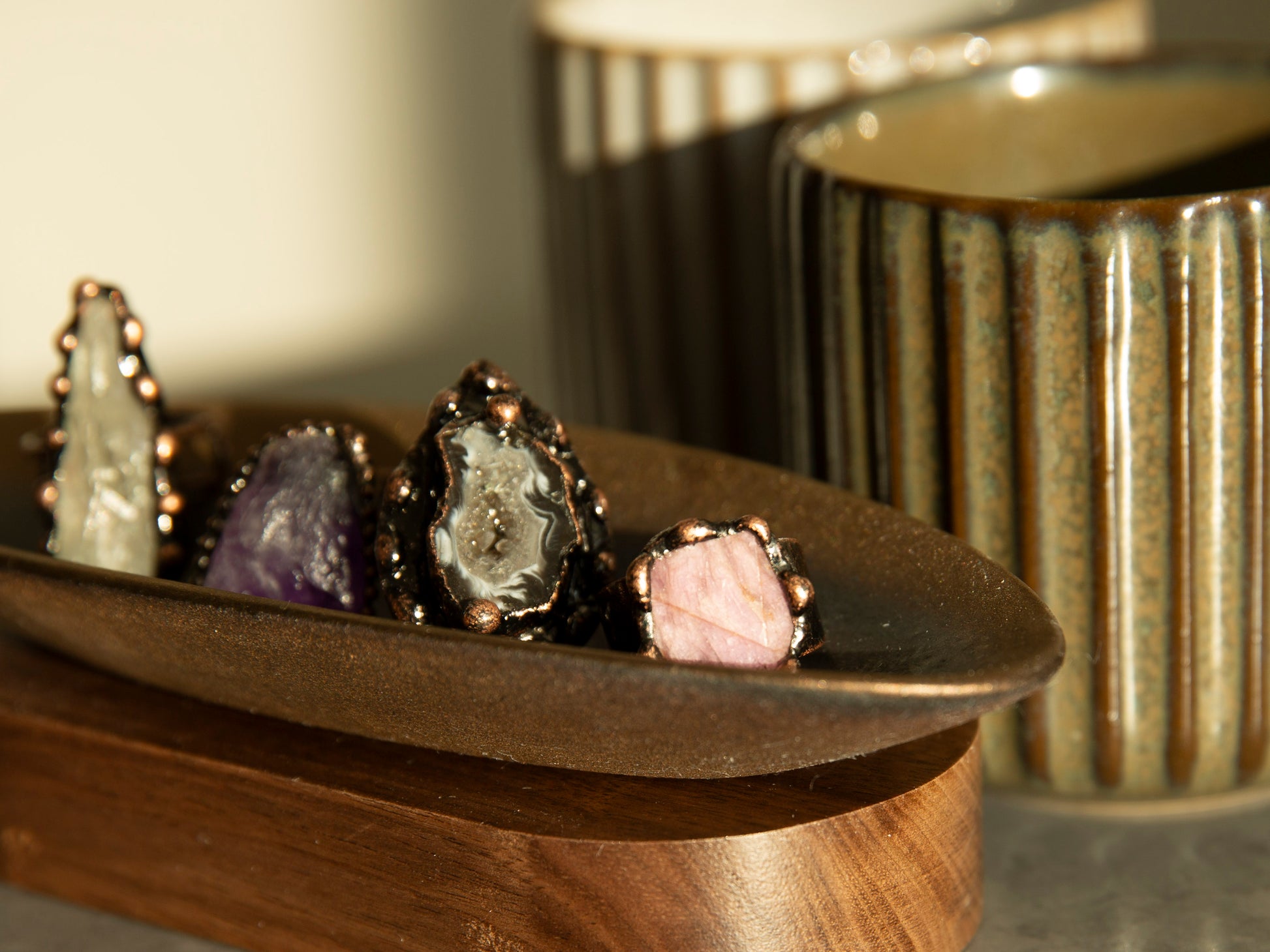 時を重ねたような質感と、天然石が持つ素朴な美しさを融合した