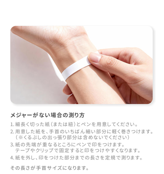 *サイズ変更をご希望の場合は、1.「オーダーサイズ」の選択肢をお選びください。2.「備考欄」に手首サイズ をお書き添えください。